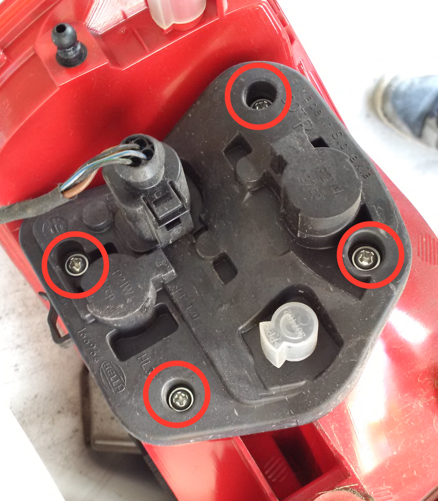 4. Remove the screws to reveal the light bulbs