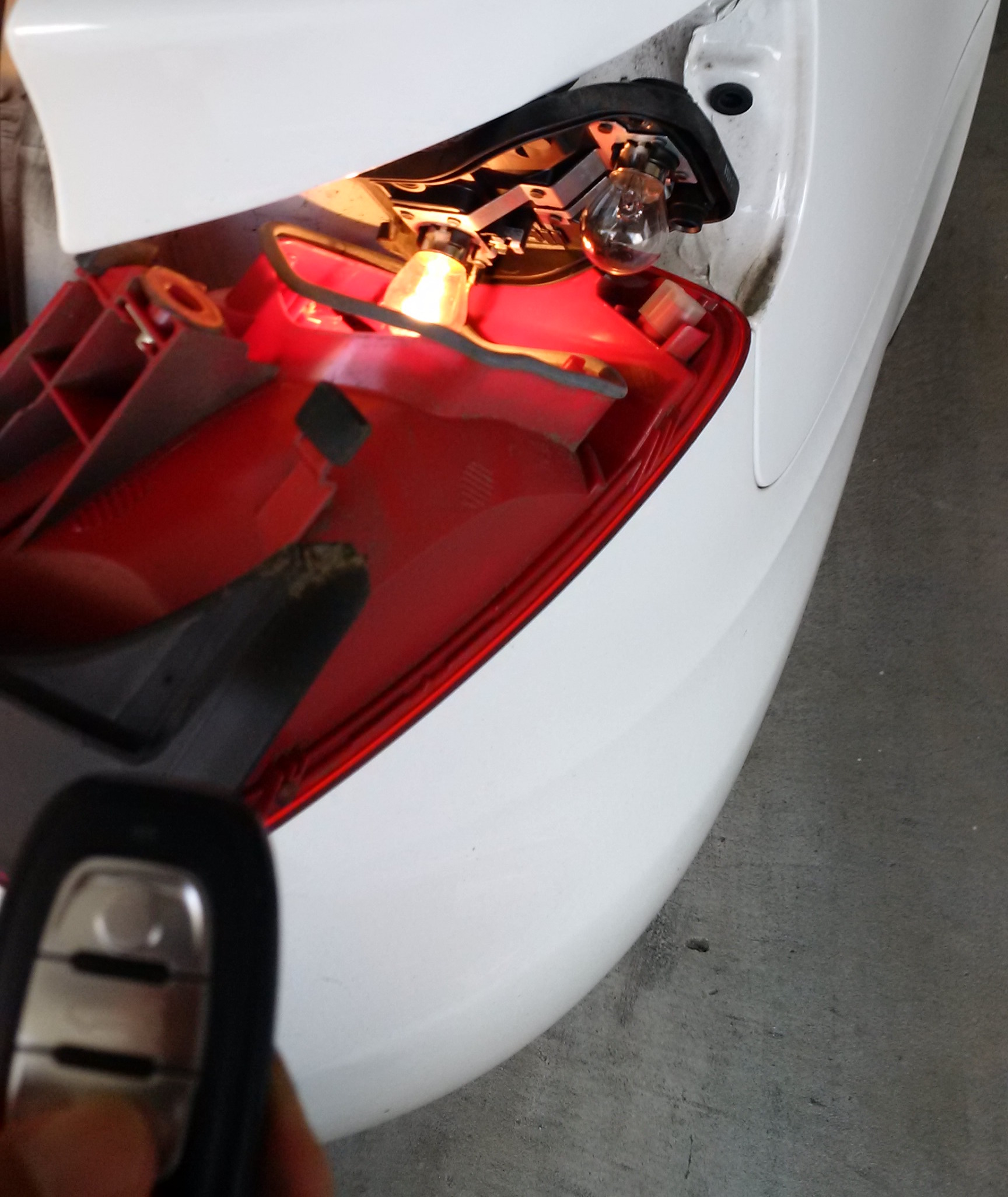 As you can see the burnt out one is the one on top which is slightly blackened. If you are not sure, confirm by using your key’s lock/unlock button. You can also pull out the working one and swap it with the burnt out one to see if your problem is related to the bulb.