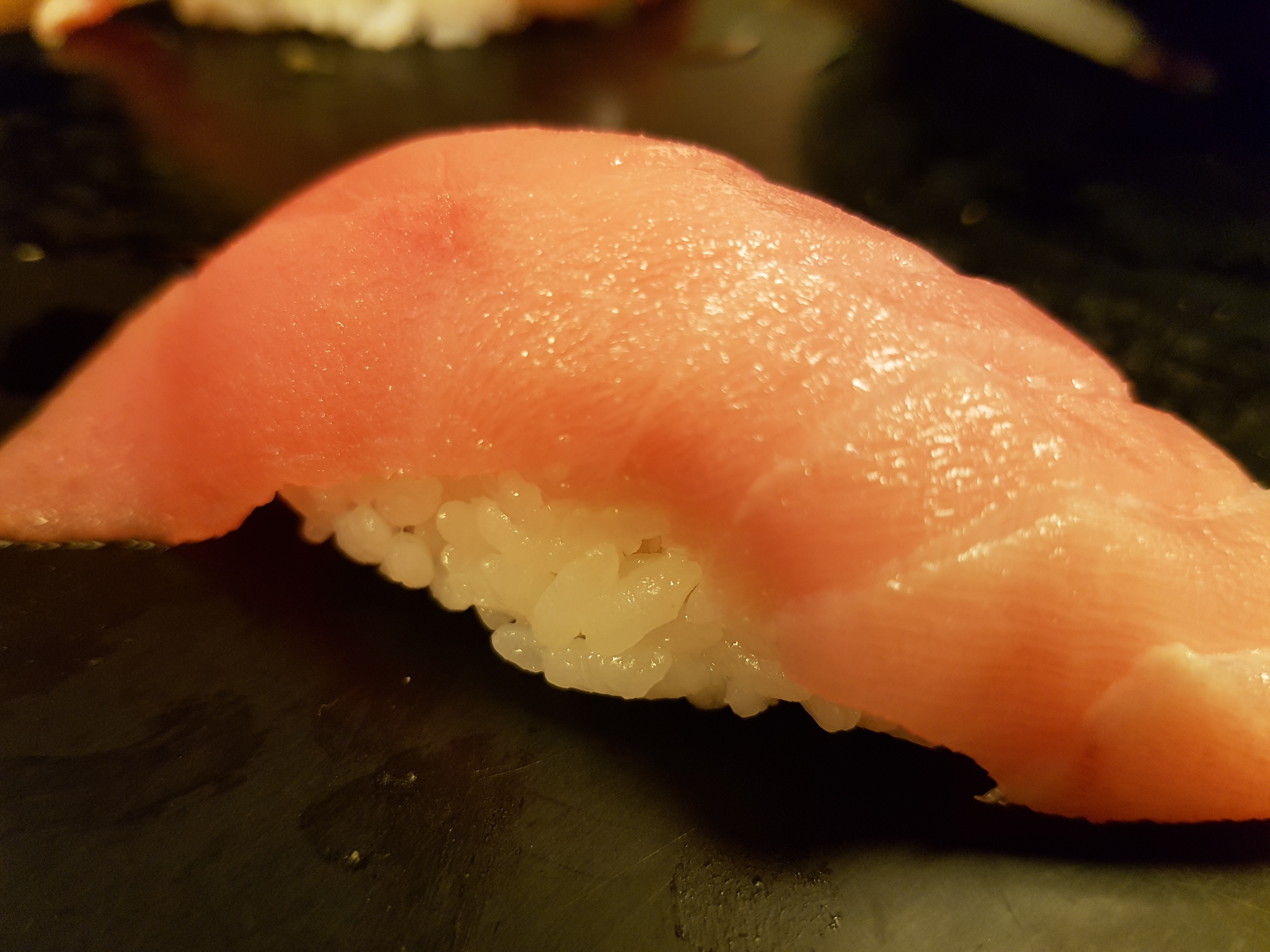 The fattiness of the toro was out of this world. As you can see from the marbleization of the fat on this piece.